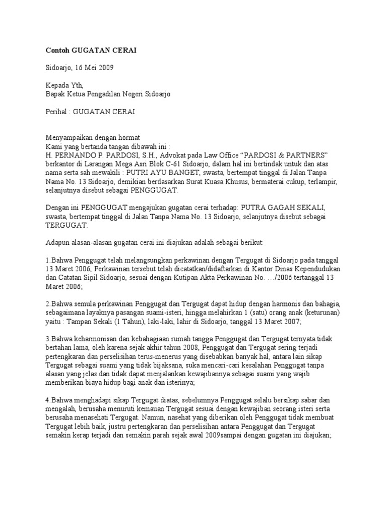 Contoh surat gugat cerai istri. We did not find results for: Check spelling or type a new query. Maybe you would like to learn more about one of these?