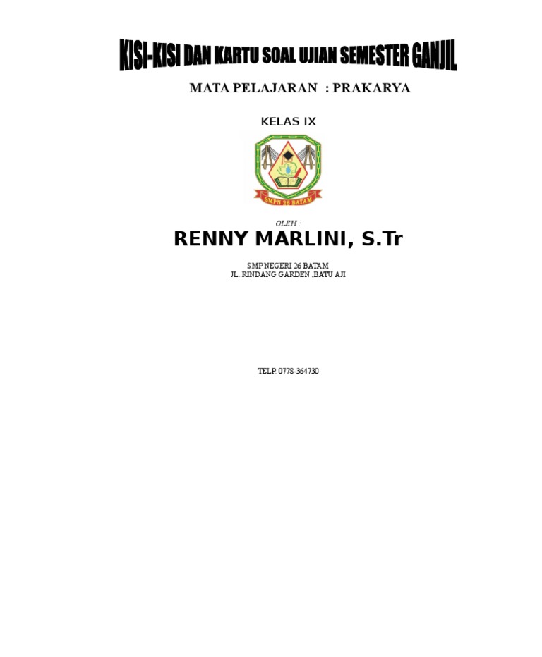 Kisi Kisi Prakarya Kelas Ix from imgv2-2-f.scribdassets.com Selamat datang di blog kumpulansoaltest. Soal ujian nasional 2012/2013 paket 1 soal ujian nasional 2012/2013 paket 2 kembali ke menu. Prakarya dan kewirausahaan (pengolahan) kelas x. Download soal latihan ujian sekolah (us/usbn) bahasa inggris smp kurikulum 2013. Prinsip pembuatan kerajinan bahan keras meliputi …. Keunikan muatan nilai produk d. Soal dan kunci jawaban us prakarya smp kurikulum 2013 tahun … Soal ujian semester prakarya dan jawaban smp/mts.